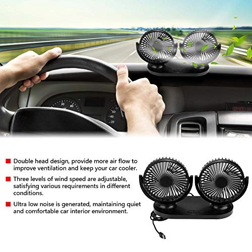 Doppio Ventilatore 12v Ebtools 12 Volt Fan Mini Auto Camadatto perVentilatore Usb Automatico 12v, Dual Head(Nero) Adatto