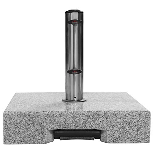 Questa moderna base trolley in granito grigio chiaro è perfetta per il vostro ombrellone con un diametro fino a 350 cm.