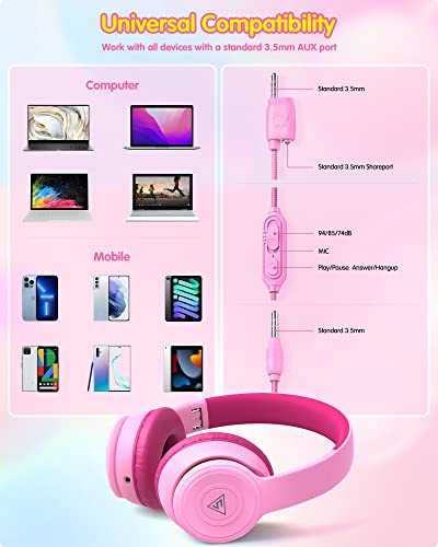 DOQAUS Cuffie Bambina con 74/85/94dB Volume Limitato, Funzione di Condivisione, Archetto Regolabile, Suono Stereo, Cuffie Bambini con Microfono per Scuola/Scrivania/PC/Telefono