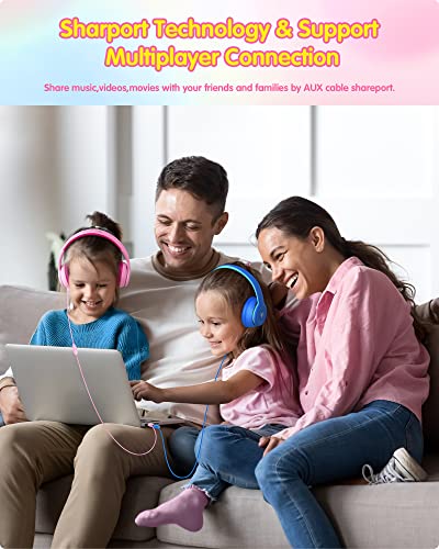 【Divertimento Condiviso e Cavo Staccabile】Queste divertenti ed eleganti cuffie per bambini sono state progettate pensando ai bambini. La funzione di condivisione consente ai bambini di condividere la stessa sorgente audio e di ascoltare insieme. Basta inserire un'altra cuffia nel jack di condivisione e i vostri bambini potranno condividere la musica e divertirsi. Le cuffie bambina sono dotate di un resistente cavo staccabile, che le rende facili da riporre e da portare con sé