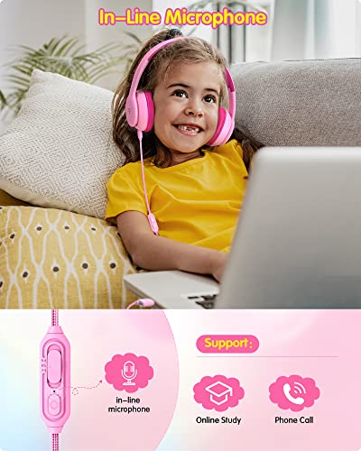 【Suono Immersivo e Micropone in Linea】Grazie ai driver da 40 mm, la qualità del suono è eccellente e i bambini possono ascoltare la loro musica preferita con un audio cristallino. Inoltre, queste cuffie over ear per bambini funzionano con il microfono in linea che le rende perfette per i corsi online e le chiamate vocali