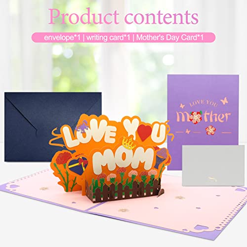 DORART Biglietto Auguri, Biglietti per la Festa Della Mamma, Biglietto di Compleanno per Mamma, Biglietto di Auguri Pop Up 3D per il Compleanno per donna,Busta Inclusa (Love You Mom)