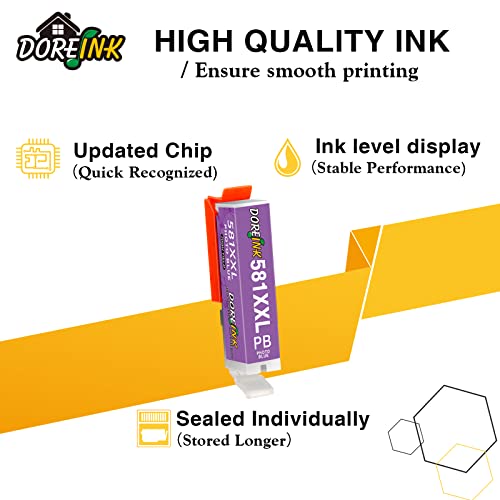 DOREINK 6 di Cartucce 580XXL 581XXL (Non Originale, 1PGBK, 1Foto Blu, 1Nero, 1 Ciano, 1Magenta, 1Giallo)