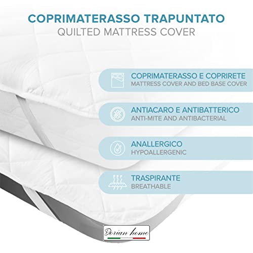 Dorian Home Coprimaterasso/Coprirete 2 in 1 Misura Matrimoniale 170x200, Trapuntato con Imbottitura in Poliestere, 100% Cotone, Fornisce un Rivestimento Morbido, Comodo e Traspirante, Made in Italy