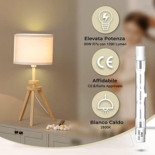 DoRight Lampadina alogena R7S 78mm 80W Bianco Caldo 2800K Dimmerabile proiettore lineare a doppia estremità tipo J lampada 1390lm Lampadina Alogena R7S J78 per Lavoro, Sicurezza (Confezione da 5)