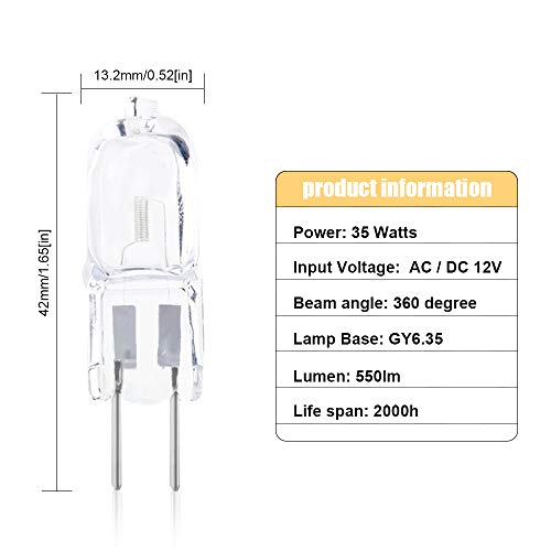 DoRight Lampadine Alogene GY6.35/G6.35 AC/DC 12V 35W Bi-pin tipo JC Soft Bianco Caldo 2700K Accent Puck Light 2-Pin Base Illuminazione Paesaggistica Lampadina in Vetro Trasparente (Confezione da 10)