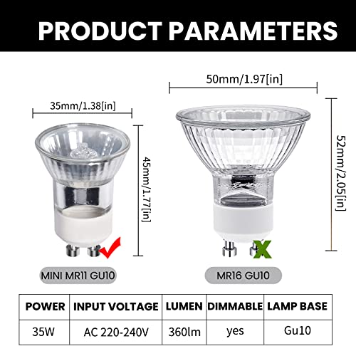 DoRight Mini Bulbi alogeni GU10, 35W Dimmable Spotlight Bulbs Caldo Bianco 2800K AC 220-240V Riflettore AC 220-240V Illuminazione a spot per downlight display a soffitto (10-pack)