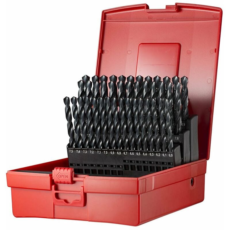 Descrizione 41-Piece set of HSS jobber drills with straight shank DIN 338 N 118° steam tempered 4xD for steel