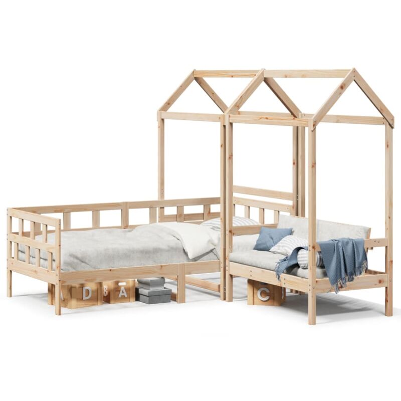 Questo set versatile di divano letto in legno può essere utilizzato come set letto nella vostra camera da letto ed è ideale anche come set divano in soggiorno. Si adatta perfettamente alle vostre diverse esigenze, fornendovi molto spazio per dormire o riposare. Legno massello di pino: Il legno massello di pino è un bellissimo materiale naturale. Il legno di pino ha le venature dritte e i nodi conferiscono al materiale il suo caratteristico aspetto rustico. Sponde letto su 3 lati: Questo letto ha un design unico nella parte laterale, offre un senso di sicurezza e aggiunge un tocco di stile sofisticato alla vostra casa. Design a doghe: La rete a doghe in legno consente una migliore circolazione dell'aria per mantenere il materasso fresco più a lungo, migliorando la capacità di carico del letto e garantendo stabilità. Spazio di conservazione aggiuntivo: Sfruttate al massimo lo spazio sotto il divano letto per riporre vari oggetti. Perfetto per riporre scatole per organizzare vestiti
