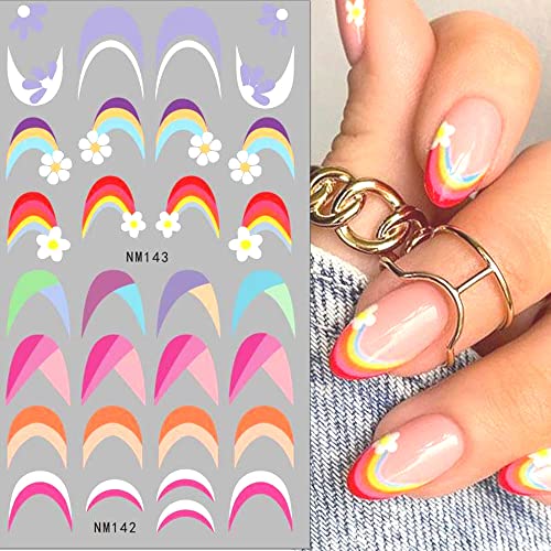 Colori arcobaleno: con un audace design a contrasto di colore, ogni adesivo ha il suo motivo unico e ogni motivo è colorato come un arcobaleno, accattivante, lascia che le unghie si liberino della monotonia e si stia anche a una festa.