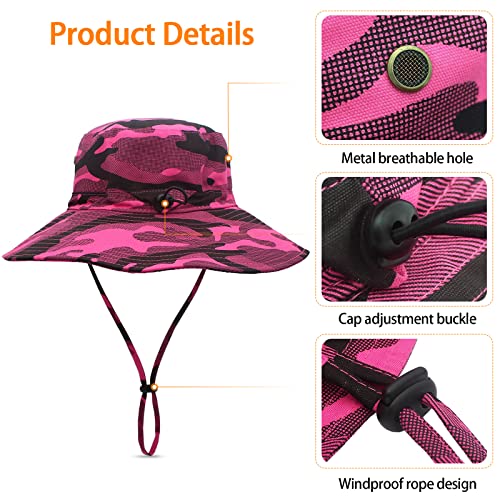 DORRISO Uomini Donne Cappello da Pesca Antivento Protezione UV UPF 50+ attività Escursionismo Vacanza Arrampicata Campeggio All'aperto Safari Hat Rosa Rossa