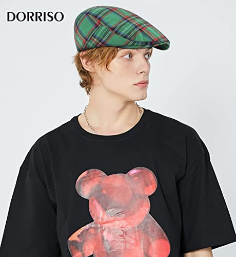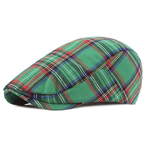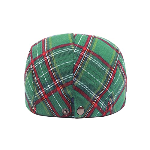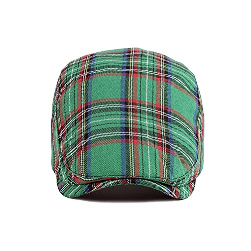 DORRISO Uomo Piatto Berretto Righe Quadri Design Leggero Berretto Baschi Scozzesi Cotone Basco Newsboy Flat Cappello Confortevole Uomo Viaggio Vacanza Cappelli Verde