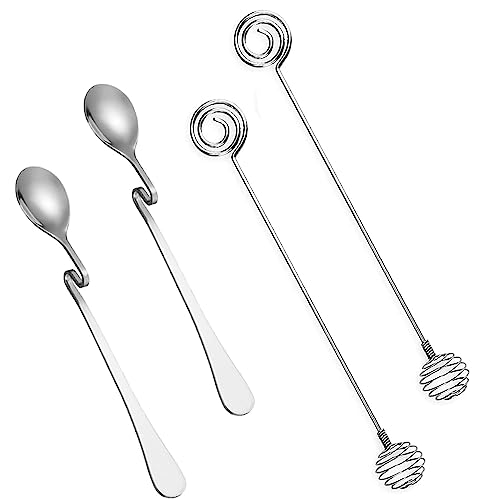 【Set di 4 dosatore miele】2 pezzi di cucchiai laterali pendenti e 2 pezzi di cucchiaio a spirale miele,un comodissimo accessorio per stoviglie e set da tè,che può estrarre rapidamente il miele dal barattolo.