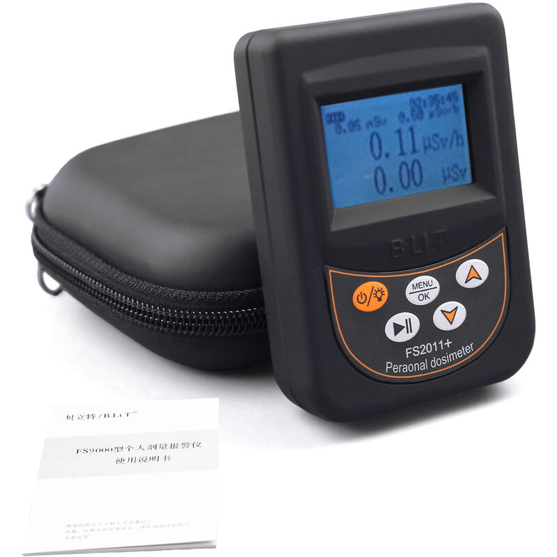 industria siderurgica, industria chimica, applicazione di isotopi, rilevamento di difetti non distruttivi X e y industriali, radiazione Y, laboratorio radioattivo e monitoraggio dell'ambiente circostante di impianti nucleari. Specifiche: Nome: rilevatore di radiazioni nucleari Materiale: plastica Modello: FS2011+ < br />Batteria: 2 batterie AAA (non incluse) Raggi di rilevamento: raggi X, γ e β duri Rilevatore: conteggio Geiger tubo Valore di radiazione di fondo normale: inferiore a 0,5μ Sv/h. Ambito di misurazione: a. Tasso di dosaggio equivalente: 0,00-1000 μ Sv/h (massimo: 10 mSv/h) b. Equivalenza dosaggio cumulativo: 0,00 μ