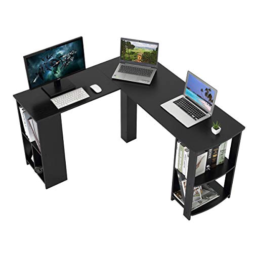 Dosleeps scrivania, a forma di L Large Corner PC da tavolo di studio Gaming scrivania per casa e ufficio piccolo spazio - nero venature del legno