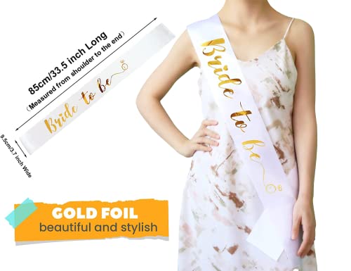 【Contenuto della confezione】: La confezione contiene 7 cose, Velo da sposa + adesivi tatuaggio dorato + cintura da addio al nubilato bianca "Bridge to be" + distintivo + occhiali rosa + corona (oro rosa) + giarrettiera.