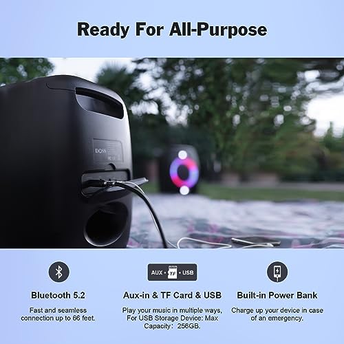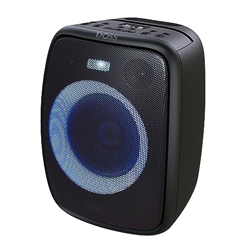 DOSS Cassa Bluetooth, altoparlante Bluetooth suono potente da 60 W, luci da festa incorporate e durata della batteria di 12 ore, ingressi per microfono e chitarra
