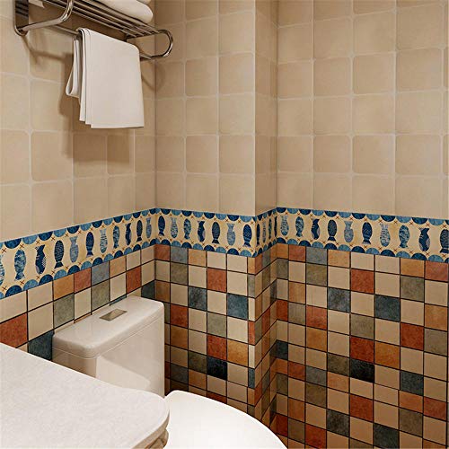 Dostear Bordi Greche Pannelli Adesivi Bordo Adesivo per Pareti Striscia Adesiva Muro Decorativa Greca Adesiva per Parete pesce azzurro 11 X 300cm