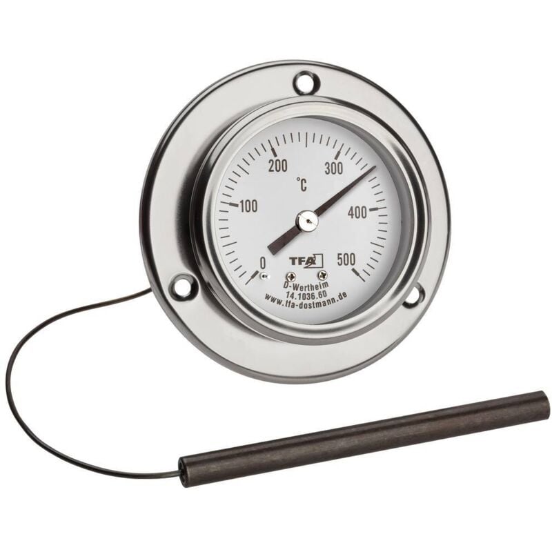Dettagli tecnici Colore acciaio inox Dimensione del prodotto, lunghezza 33 mm Dimensione, Ø 90 mm Elettrodomestici da cucina caratteristiche A incasso Peso 155 g Tipo prodotto Termometro per barbecue Installazione ø 60 mm Sensore ø 8 mm x 100 mm Sonda in metallo circa 150 cm Termometro da forno professionale con sonda in metallo flessibile 14.1036.60, come pezzo di ricambio, per il retrofit o l'edilizia, in acciaio inox La crosta di pizza croccanti, il pane al forno in pietra al marrone oro o il formaggio perfettamente fritti sul gratin: Con questo affidabile termometro da forno professionale di TFA, il controllo della temperatura in pizzerie, panetterie e tutte le aziende del settore gastronomico, in cui si lavora con grande calore e la temperatura di cottura corretta garantisce qualcosa. Ma anche nella cucina hobbistica, lo strumento di misura preciso fornisce un buon servizio. Anche se molti forni dispongono di un indicatore di temperatura, questo a volte si allontana notevolmente