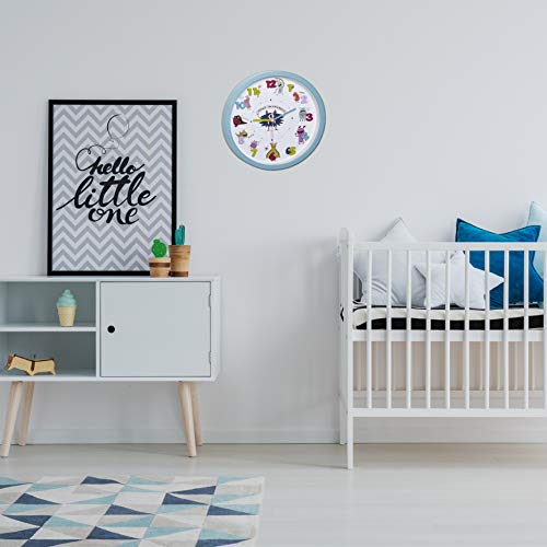 Design di alta qualità: l'orologio per la cameretta dei bambini è fresco e colorato e dispone di una cornice in plastica turchese con copertura in vetro