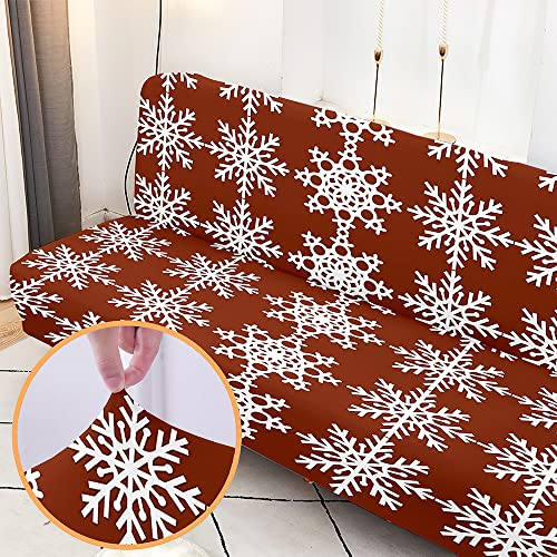 DOTBUY-SHOP Copridivano Senza Braccioli Elasticizzato Inverno Natale Stampa Fiocco di Neve Pieghevole Clic Clac Fodera per Divano Letto all-Coperto Antiscivolo Copridivano (Stile B,160-190cm)
