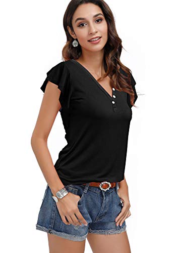 DOTIN T-Shirt Donna Casual Estate Maniche Corte con Volant Maglietta Cotone Blusar Toppar Nero L
