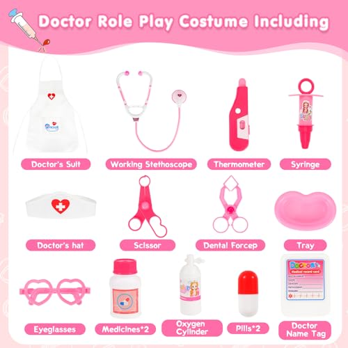 Kit Dottoressa Bambina 15 Pezzi,Valigetta Dottore Bambini Stetoscopio Giocattolo Giocattoli Kit Infermiere Giochi Dottore Per Bambini Giocattolo Chirurgo Gioco di Ruolo per Bambina Bambino 2-6 Anni