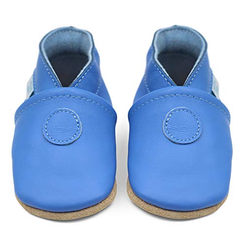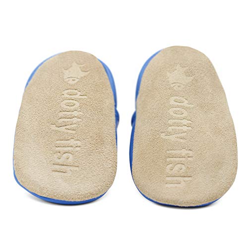 Dotty Fish Scarpine in Pelle Prima Infanzia. Scarpe Bimbi per Primi Passi con Suola Scamosciata. Cielo Blu. 0-6 Mesi (17 EU)