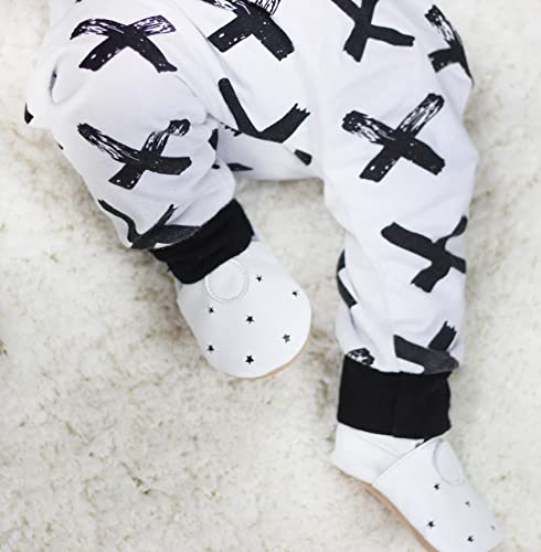 Dotty Fish Scarpine in Pelle Prima Infanzia. Scarpe Bimbi per Primi Passi con Suola Scamosciata. Bianco con Stelline. 0-6 Mesi (17 EU)