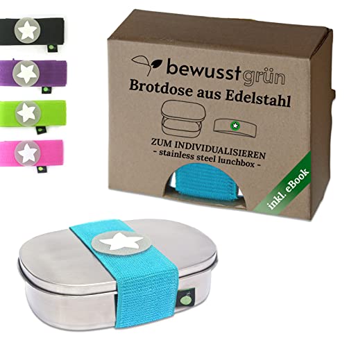 Do dotty, portapranzo in acciaio inox, dimensioni 16,5 x 12 x 4 cm, con scomparto e chiusura in velcro personalizzabile, adatto per bambini, perfetto per la scuola turchese