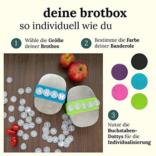 Do dotty, portapranzo in acciaio inox, dimensioni 16,5 x 12 x 4 cm, con scomparto e chiusura in velcro personalizzabile, adatto per bambini, perfetto per la scuola argento