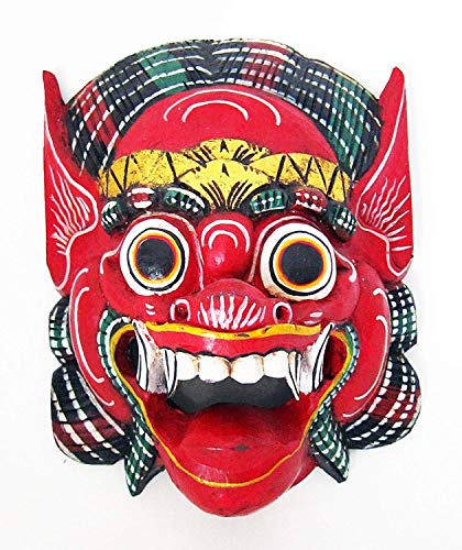 33 cm Alto Rosso Parete di Legno Maschera di Barong, Lato Intagliato a Bali