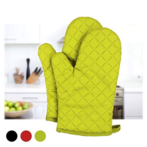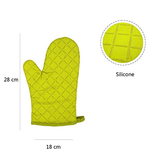 Double Elite - Guanti da forno a manopola in silicone antiscivolo e resistenti al calore, con lunghi polsini e 2 presine, utilizzabili per cucinare al forno e con il barbecue, 1 paio, colore nero Green