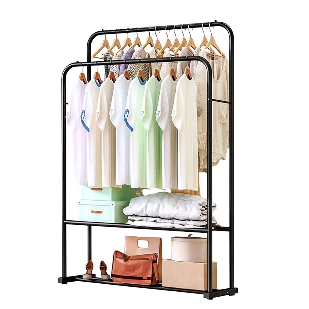 Double industrial coat rack with balda, clothes, shoes, bags, fastener, durable, space-saving, easy mounting, steel