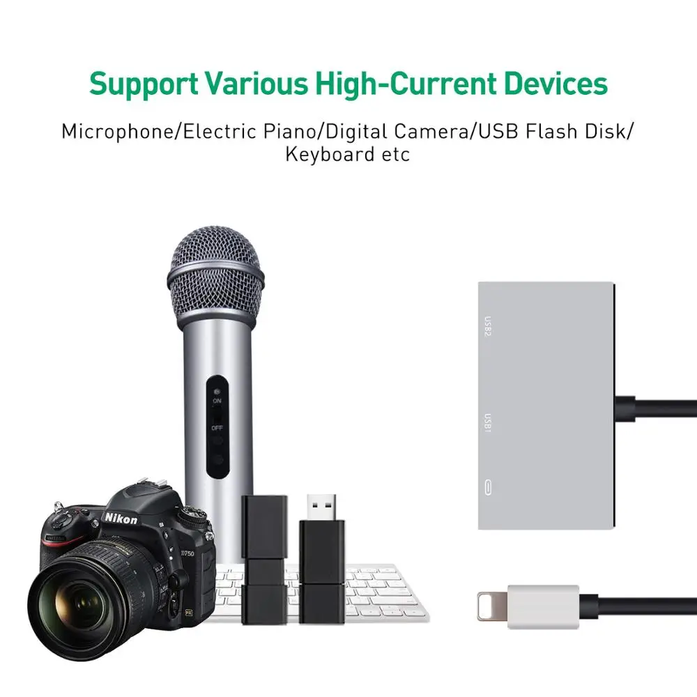 Double USB A Port Female Adapter Cable With 8Pin Power Interface Charging Sync Data Transfer For iOS 9 to 12 iPhone iPad Mini