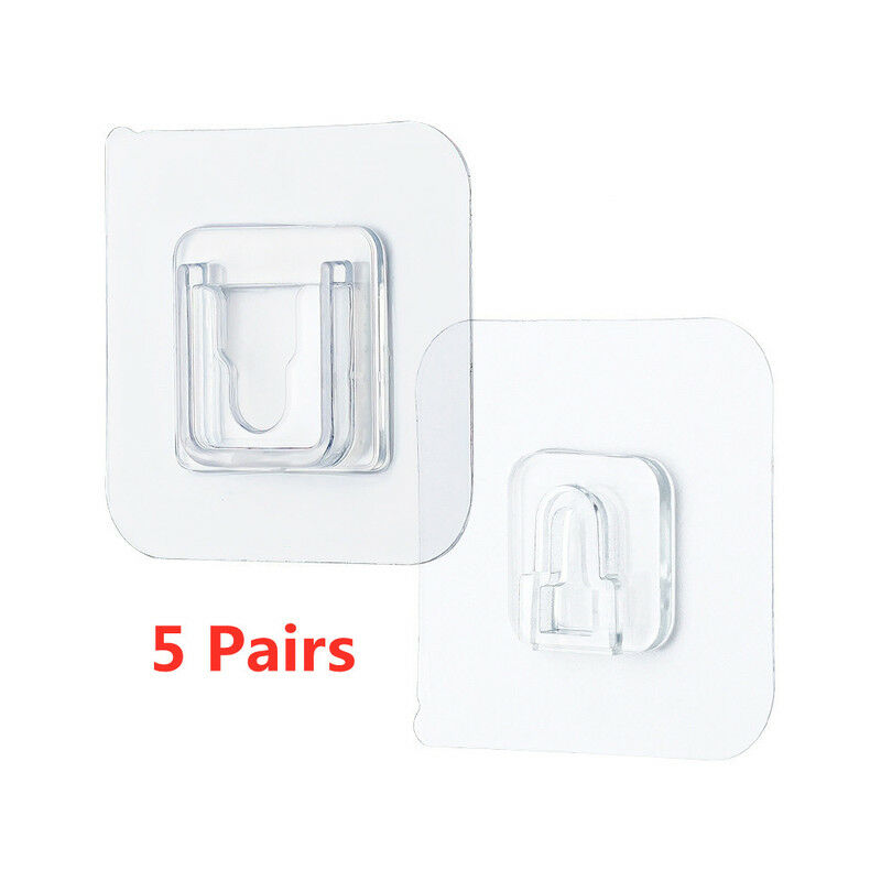 Double-Sided Adhesive Wall Hooks Rack Hanger Strong Self Transparent Suction Holder for Kitchen Heavy Duty Stick Waterproof,5 pairs