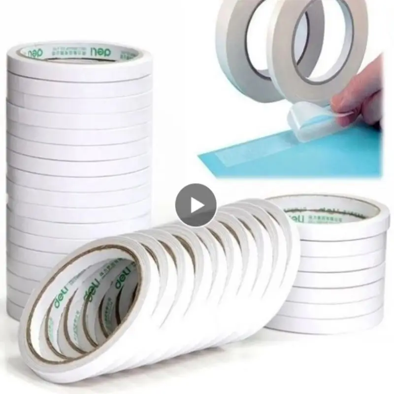 12M Double Sided Tape White Super Strong Double Sided Adhesive Tape 8mm 10mm 12mm Paper Strong Ultra Thin High Adhesive Cotton