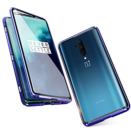 Adsorbimento magnetico ★ Custodia per adsorbimento magnetico anteriore e posteriore in vetro temperato, design in metallo con copertina flip per OnePlus 7T serie❤ Un caso che non ha bisogno di protezione dello schermo in vetro temperato ❤