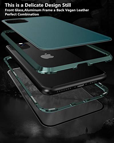 DoubTech Pelle Vegano Custodia per iPhone 11 PRO Adsorbimento Magnetico 360 Gradi Protezione Cover Vetro Temperato Telaio Alluminio Forte Magnete Antiurto Metallo Case