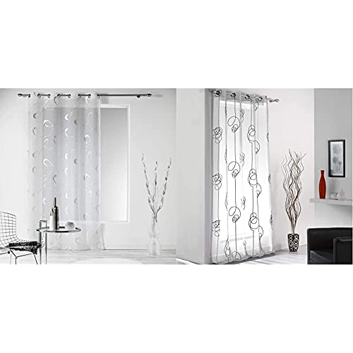 Douceur D'Interno 1624249 Tenda Con Occhielli, Stampa Argento Infinite Bianco Poliestere & 1622788 Tenda Con Occhielli, In Voile Di Poliestere Stampato, Motivo Spirali Irregolari, 240 X 140 Cm