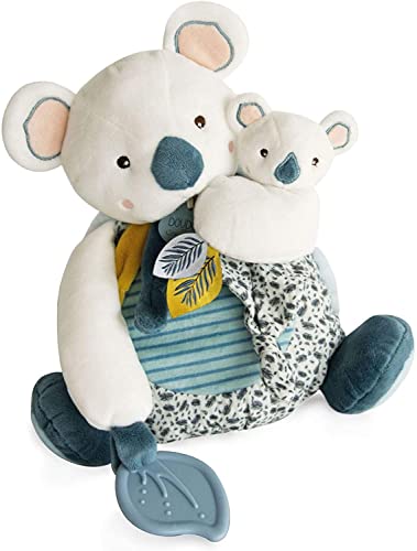 Doudou et Compagnie - YOCA Koala Collection - Koala Plusch con baby e anello di beissring-25 cm -DC3669, Blu