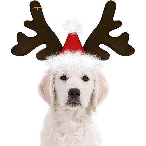 DOUDOU Gatto Cane di Natale Antlers Fascia Corna di Renna Fascia per Cani Gatti, Cane Reindeer Antlers Cappello del Cane di Natale Costume Cervo