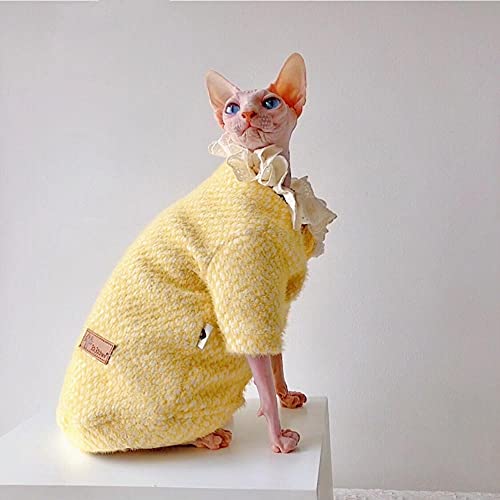 DOUJIN Sphynx/Devon Vestiti per Gatti Senza peli, Maglione per Gatti Giallo Super Morbido e Spesso-L