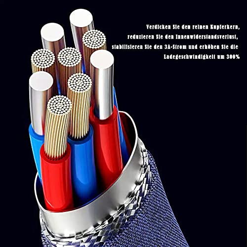 【 Rafforzamento della durata 】 Cavo di ricarica 3 in 1 rivestito di fibre di nylon intrecciate, che hanno un'eccellente resistenza alla torsione e all'abrasione. Questo cavo di ricarica multiplo può sopportare almeno 9.000 cicli di test di piegatura a 90 gradi. Ideale per l'uso quotidiano.