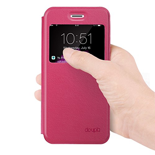 Doupi Deluxe Finestra FlipCase per iPhone SE (2020) / iPhone 8/7 (4,7 Pollici), Protezione Custodia Ultra Slim Magnete Flip Cover Protettiva Book Style Etui Stare in Piedi, Rosa Rosso