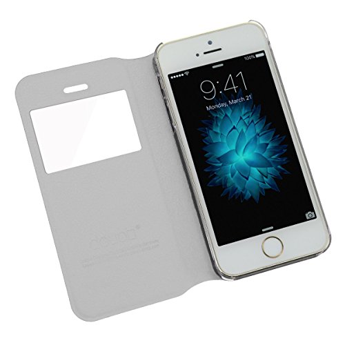 Doupi Deluxe Finestra FlipCase per iPhone 5 5S SE, Protezione Custodia Ultra Slim Magnete Flip Cover Protettiva Book Style Etui Stare in Piedi, Bianco