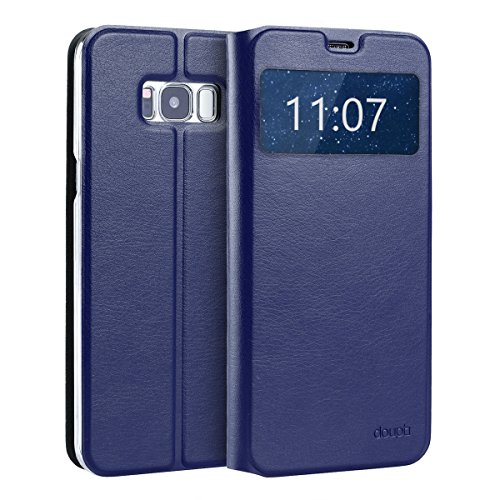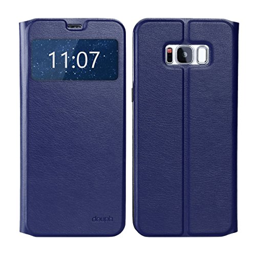 Doupi Deluxe Finestra FlipCase per Samsung Galaxy S8 Plus, Protezione Custodia Ultra Slim Magnete Flip Cover Protettiva Book Style Etui Stare in Piedi, Blu Scuro