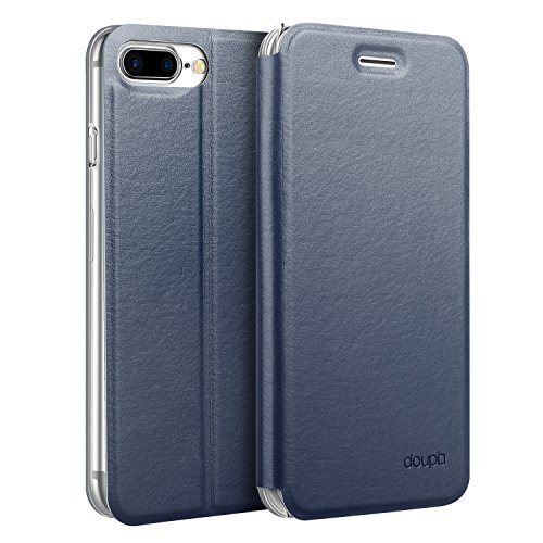 Doupi Deluxe FlipCase per iPhone 8 Plus / 7 Plus (5,5 Pollici), Protezione Custodia Ultra Slim Magnete Flip Cover Protettiva Book Style Etui Stare in Piedi, Darkblue