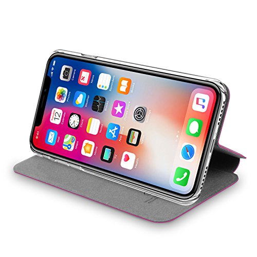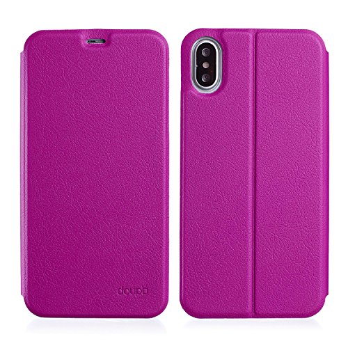 Doupi Deluxe FlipCase per iPhone X/XS 5,8 Pollici, Protezione Custodia Ultra Slim Magnete Flip Cover Protettiva Book Style Etui Stare in Piedi, Rosa Rosso