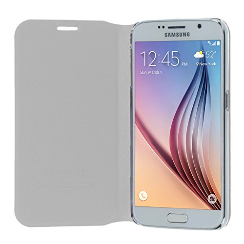 Doupi Deluxe FlipCase per Samsung Galaxy S6, Protezione Custodia Ultra Slim Magnete Flip Cover Protettiva Book Style Etui Stare in Piedi, Bianco
